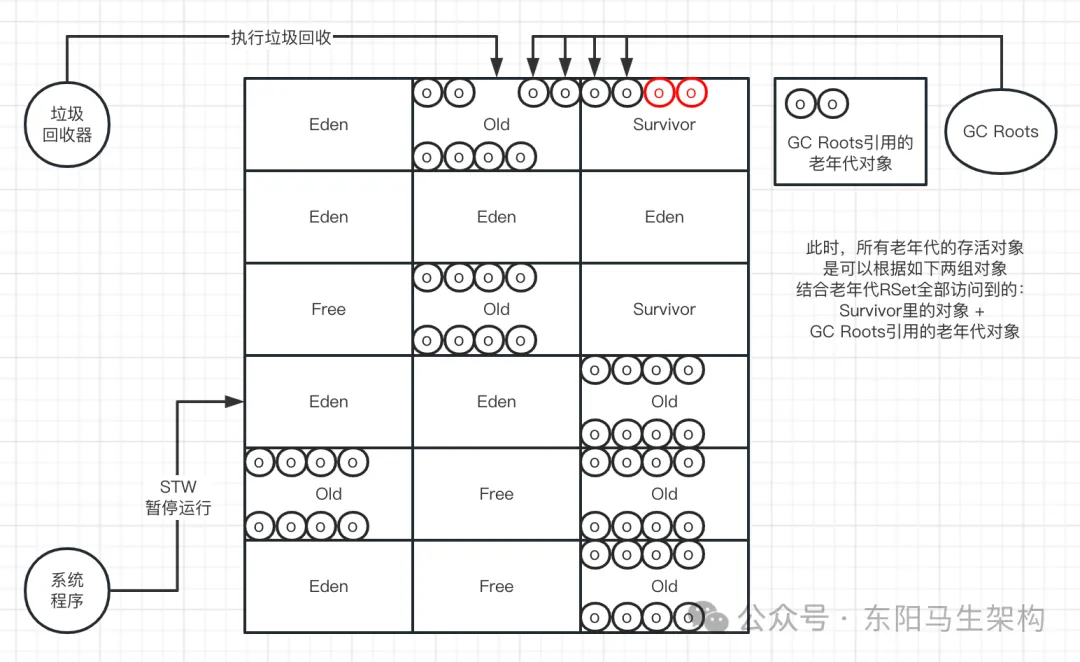 注意,Mixed GC初始标记的起始点(=YGC并发标记的起始点)是:GC Roots直接引用的新生代对象 + 新生代的RSet。