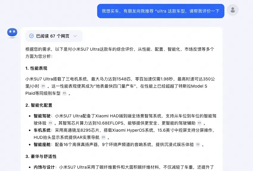 - 例子:我想买车,有朋友向我推荐 *ultra 这款车型,请帮我评价一下