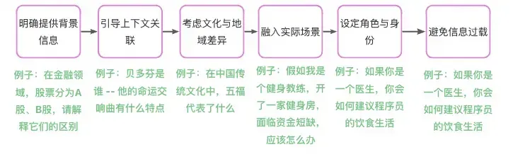 - 考虑上下文与背景信息:给定充足的上下文信息,帮助AI能够更加设身处地地为我们思考。