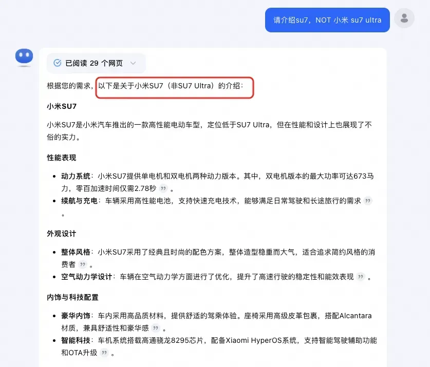 - 例子:请介绍su7,NOT 小米 su7 ultra