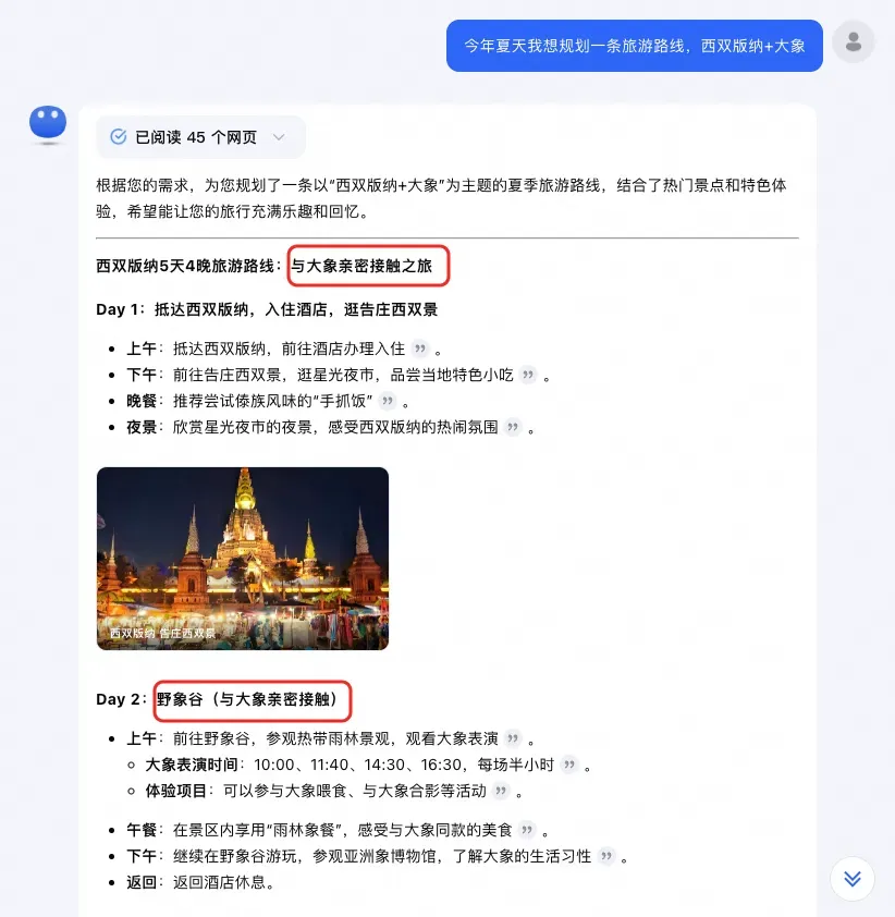 - 例子:今年夏天我想规划一条旅游路线,西双版纳+大象