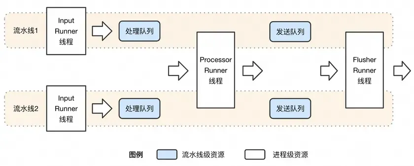 基于此,必须对iLogtail进行整体的架构升级,尤其是C++主程序部分,通过引入流水线的概念,将输入、处理和输出能力彻底插件化,支持能力的自由组合,从而满足上述需求。有关架构升级的部分内容,可参考《破浪前行:iLogtail十年老架构如何浴火重生》 ,本文仅对新架构进行简单介绍。