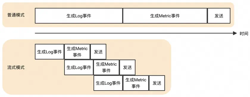 回到Prometheus抓取场景,默认情况下,输入插件会等单次网络请求结束后再对文本进行处理。那么对于单次抓取文本量可达几十MB的target,必然会导致驻留数据量增加,从而增大内存。显然,我们可以引入流式处理来缓解这一问题。