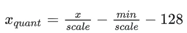 这部分没什么好说的,quant_deepseek_w8a8.py 中用到的就是 min-max 量化算法。对于一个权重tensor或者激活X的tensor来说,假如它的最大、最小值分别为max、min,那么首先可以求出 scale=(max-min)/255,然后得出量化公式为