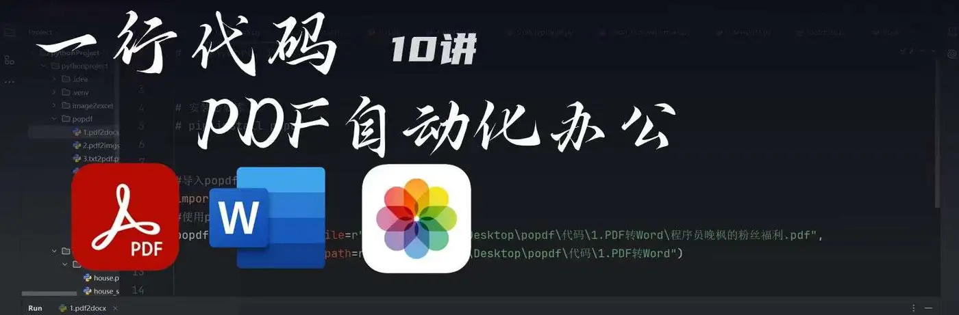 先给大家介绍我维护的开源项目 popdf,这是一个专注于PDF操作的Python库,功能包括PDF转Word、PDF转图片、合并PDF、加密PDF等等。项目地址在这里:https://gitcode.com/python4office/popdf。