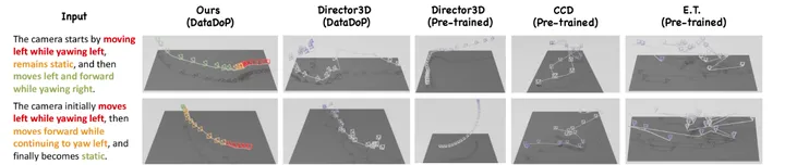 基准测试结果表明,基于 DataDoP 训练的模型在生成艺术化轨迹方面具有显著优势。