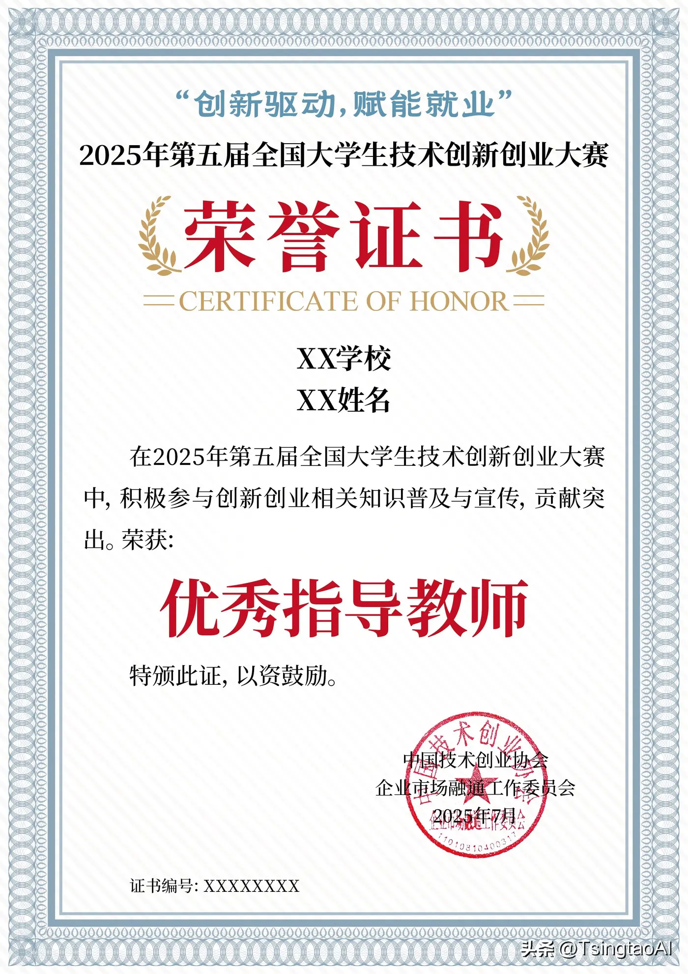 根据指导报名大赛的学生人数及学生获奖人数进行综合评定,可申请免会费加入中国技术创业协会企业市场融通工作委员会,面向广大高校老师颁发协会委员证书!!