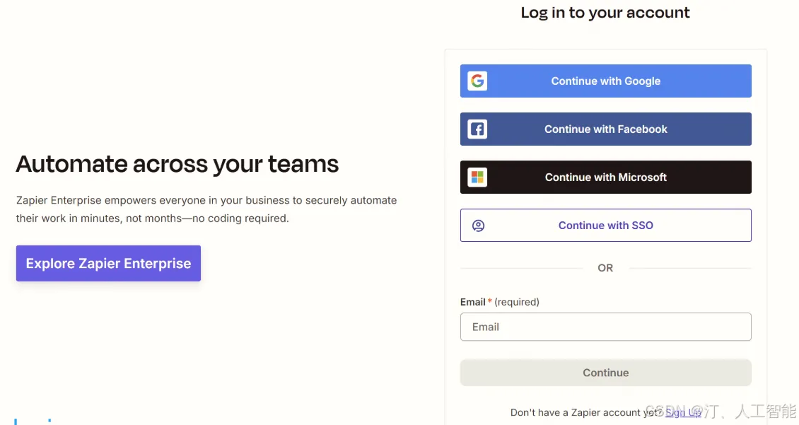 首先我们需要登录 https://zapier.com/app/login ,如果没有账号的小伙伴可以去注册一个。