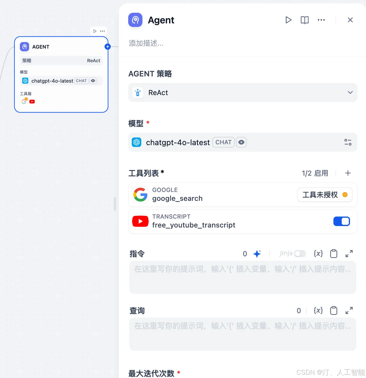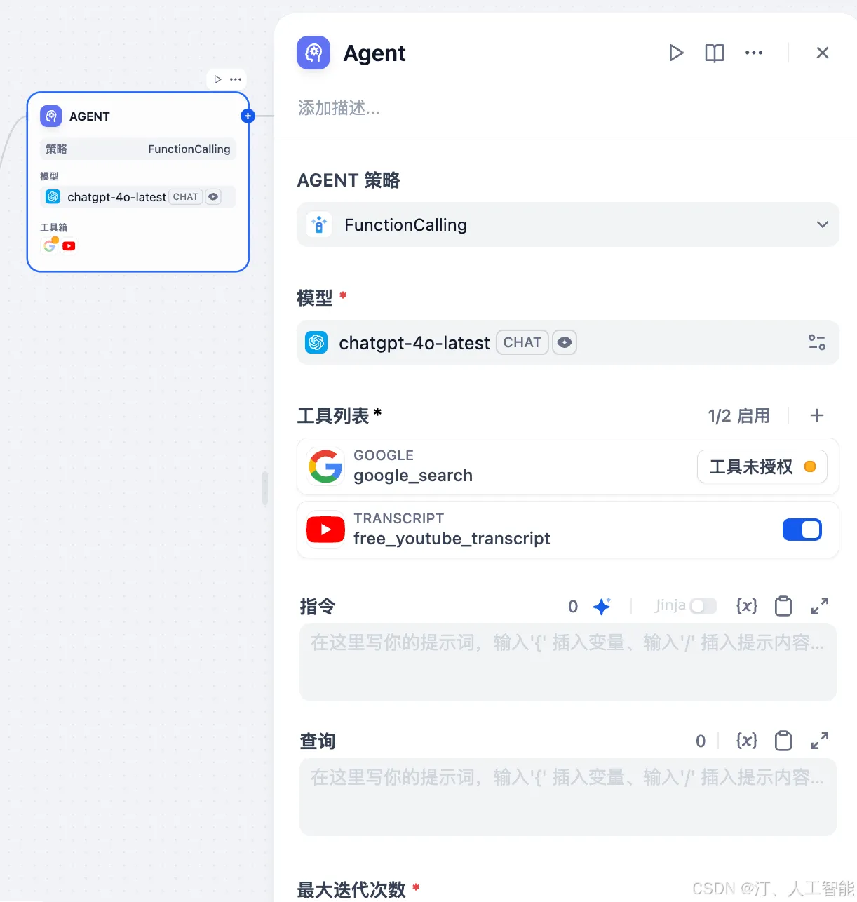 最大迭代次数: 设定 Agent 的最大执行步数。