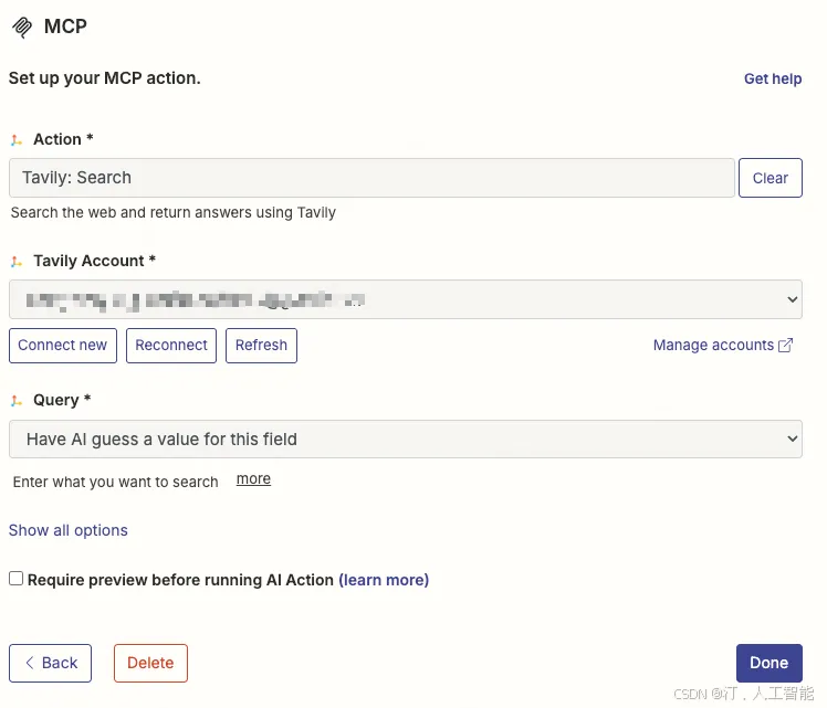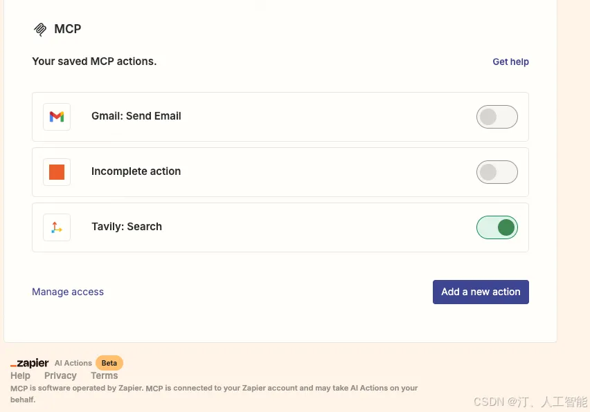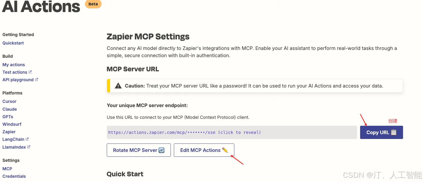 登录后我们在 zapier 管理平台 创建一个 MCP Server URL:https://actions.zapier.com/settings/mcp/