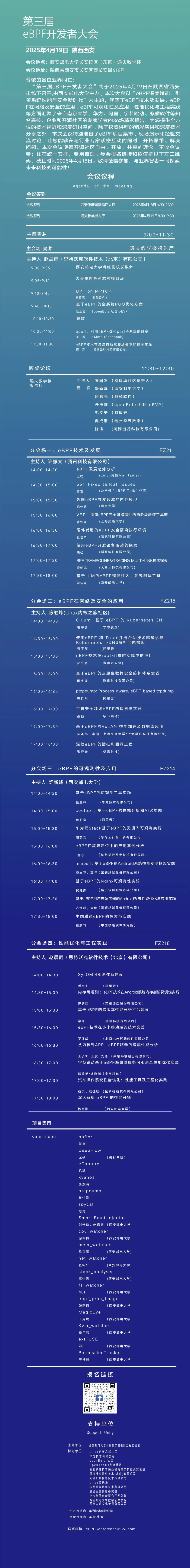 第三届 eBPF 开发者大会(以下简称“大会”)将于 2025 年 4 月 19 日(本周六)在西安召开。作为 eBPF 技术领域的重要盛会,本次大会以“eBPF 深度赋能,引领系统性能与安全新时代”为主题,探讨 eBPF 技术的前沿应用与未来趋势。龙蜥社区已连续三年参加这一行业盛会,与业界大咖及 eBPF 技术爱好者们深入交流,分享最新的技术成果与实践经验。