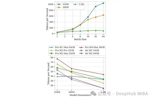 各模型版本的每秒标记处理吞吐量对比。