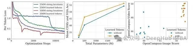 - 利用学习型标记的模型在OpenCompass-Image和OpenCompass-Video评估中获得更高分数,强调了结构化位置标记在紧凑多模态模型中的重要性。