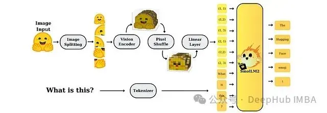 该研究系统性地探索了小型多模态模型的设计选择与权衡。在SmolVLM的架构中,图像首先通过视觉编码器进行处理,编码后的视觉特征经过池化和维度投影后输入到SmolLM2语言骨干网络中进行多模态理解与生成。