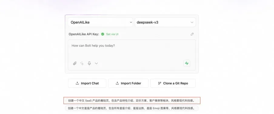 本文旨在介绍如何将 Bolt.diy 部署到云上,通过云原生应用开发平台 CAP 构建 Web 服务,通过其提供的函数计算资源,结合百炼的模型服务能力,采用deepseek-v3实现代码生成,可即时查看生成的代码及运行预览效果,体验流畅高效的开发流程。借助 CAP还可以快速便捷地部署开源项目,而无需担心底层资源管理和运维问题,从而专注于应用的创新和开发。