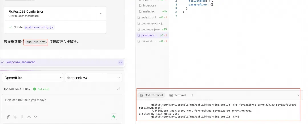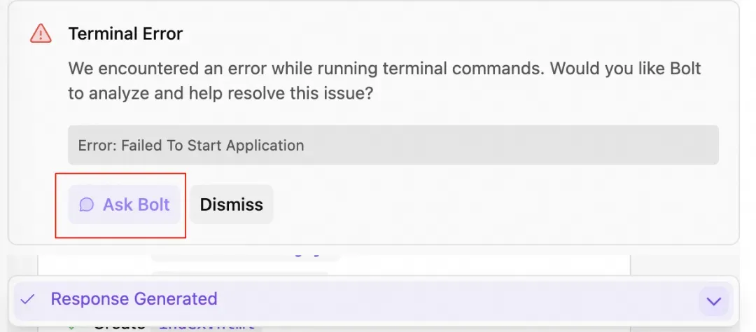 2. 如果出现 Terminal Error 错误可以单击 Ask Bolt,让 AI 自动处理问题。