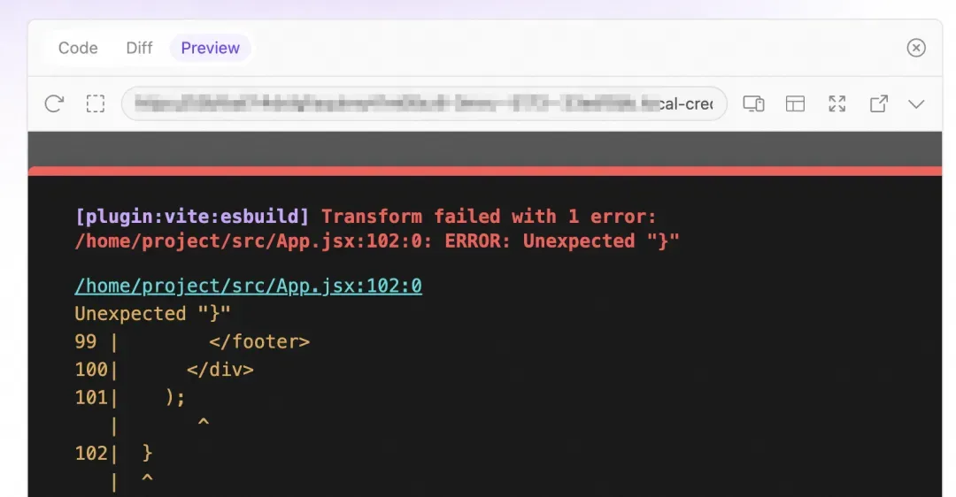 4. 如果在预览界面中出现错误,可以复制错误信息发送给模型进行修复。
