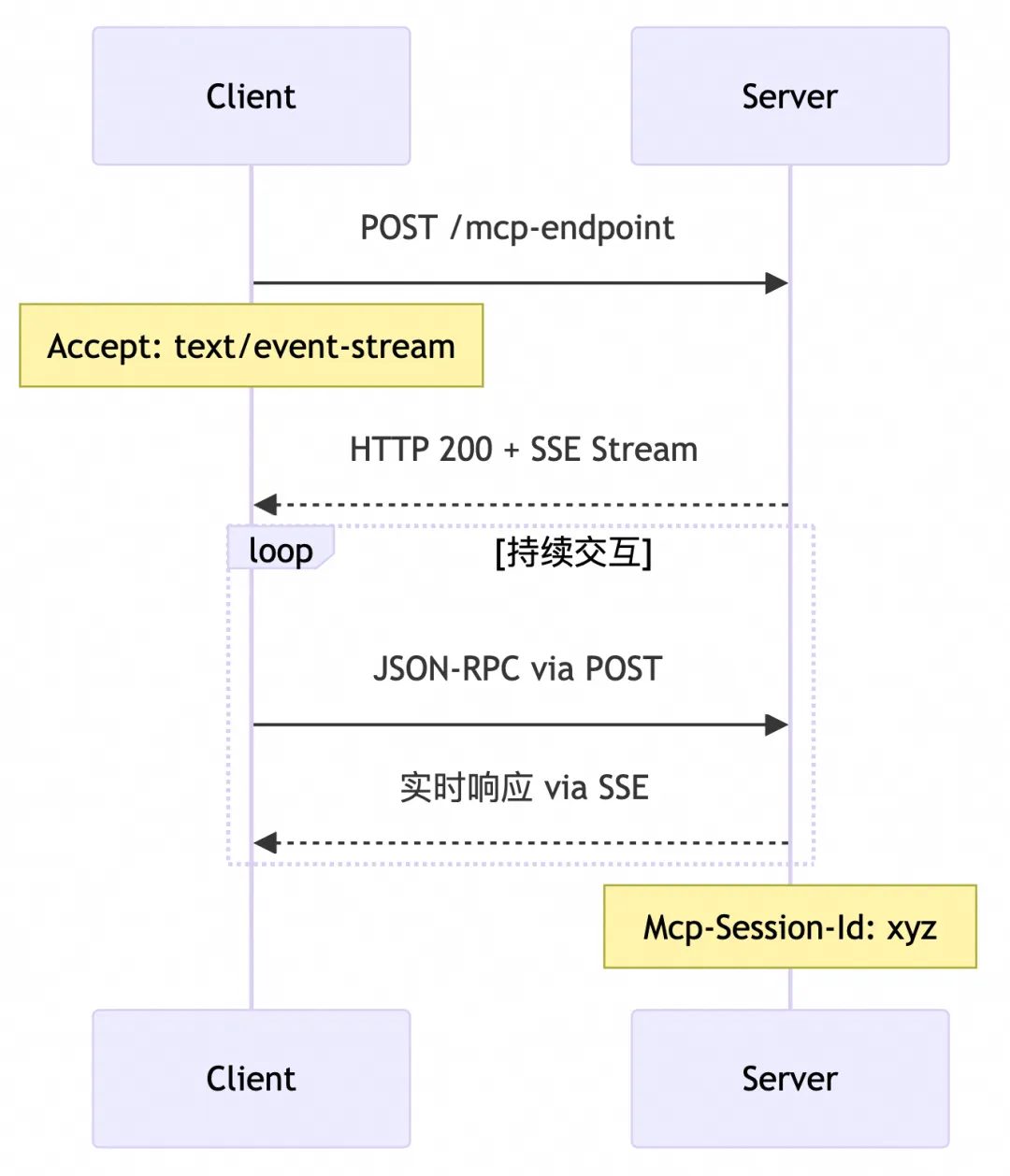 引入 Mcp-Session-Id 头部,支持断线重连与状态恢复 |