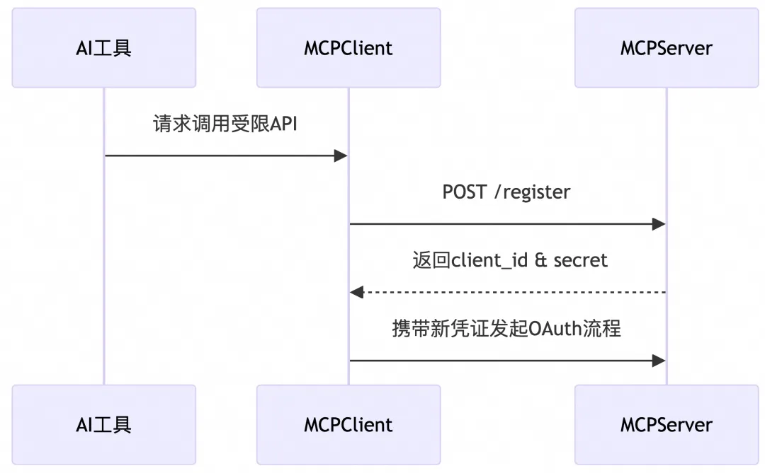针对 AI 工具生态的碎片化特点,MCP 强制要求支持 RFC7591 动态注册协议: