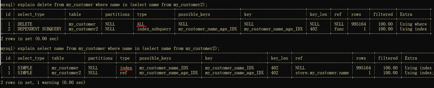 2 rows in set, 1 warning (0.00 sec)