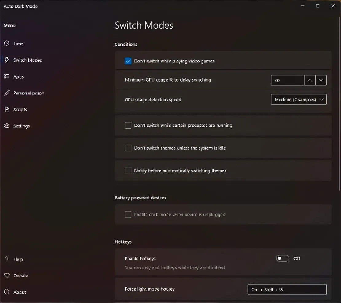 AutoDarkMode是智能系统主题调度工具,基于地理位置日出日落时间或自定义计划自动切换深色/浅色模式。其API挂钩Windows/macOS底层主题引擎,可同步调整Office/Adobe套件界面色调,并联动飞利浦Hue灯光系统。高级版支持为不同应用单独设置主题策略,如夜间保持PS深灰界面但Word亮白。