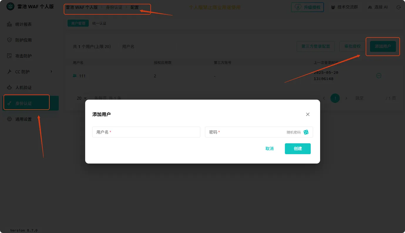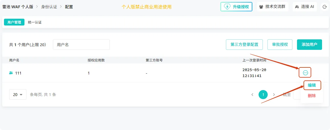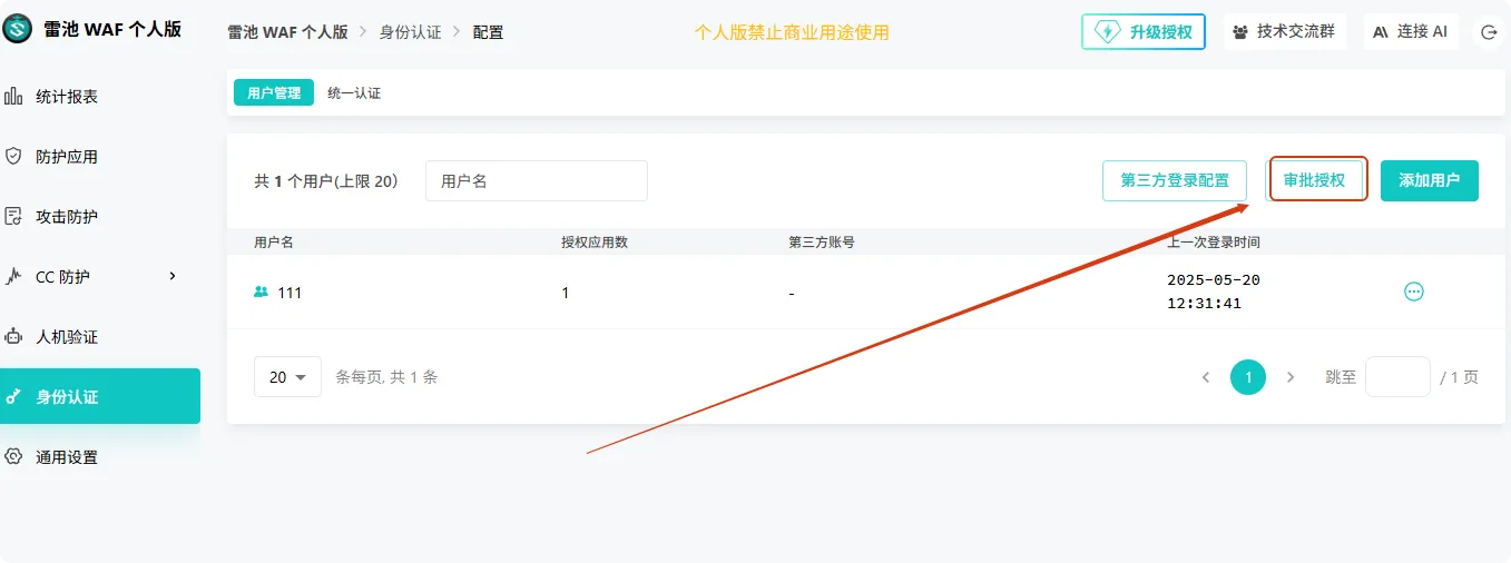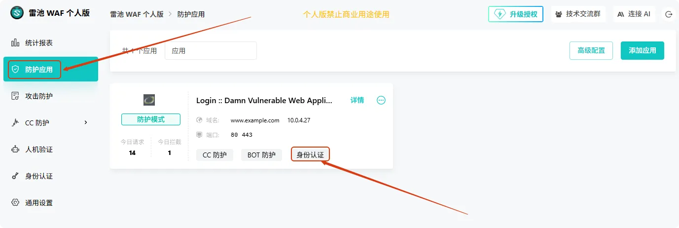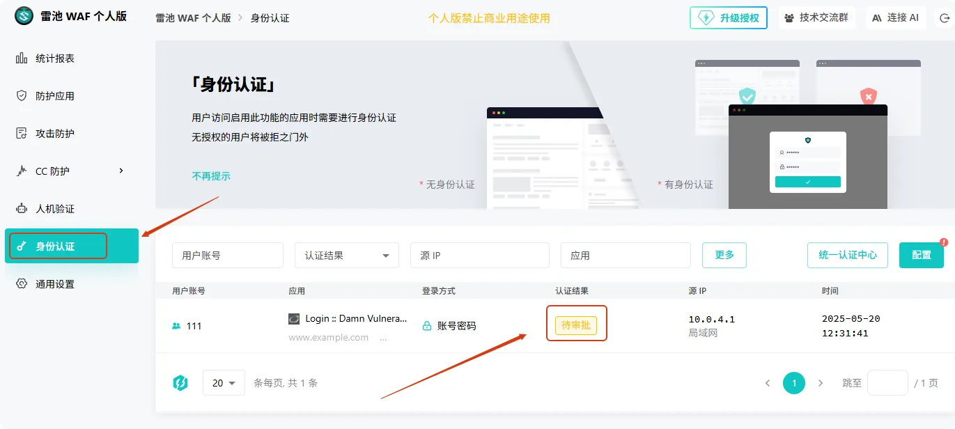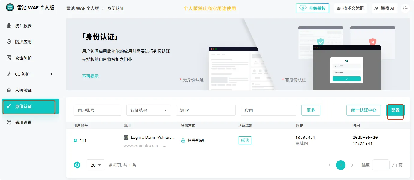 有些时候,网站不想公开,且自己不想写代码加个身份认证功能,可以用雷池这个“一键懒人配置”
