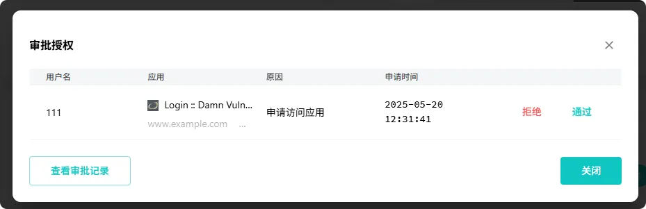 在选择需要审批授权访问时,账号默认是没有访问权限的