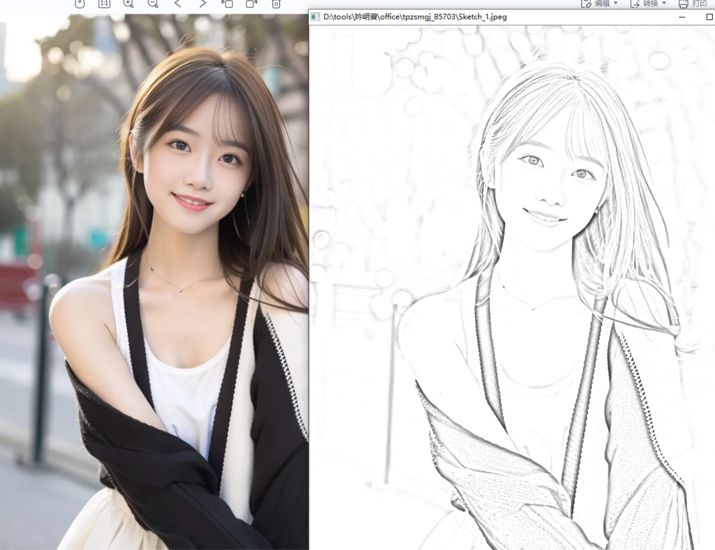 然后他就生成出了一张素描画,我们可以和原照片对比下,效果还是挺不错的,我这里的代码配置参数直接就是默认的,你们也可以进行设置的