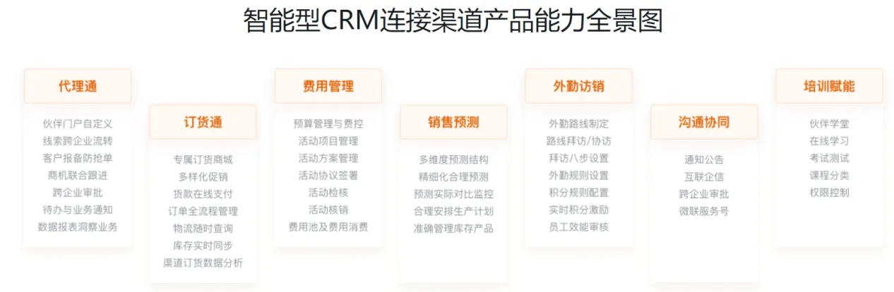 在适配500人规模CRM系统的选型中,重点就是要考察CRM的主要功能,如精细化销售管理能力、全渠道营销能力、灵活定制能力、AI融合与生态连接能力等等。纷享销客作为国内CRM行业的领先者,5大关键能力为企业完美构建了一套“智能驱动、生态共赢”数字化操作系统。