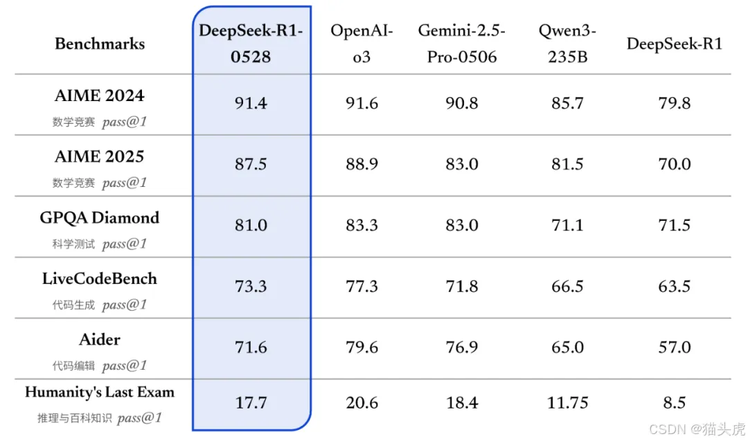 官方说明:0528 版本在深度思考与推理能力方面显著增强——在数学、编程与通用逻辑等多项基准测评中,表现已比肩国际顶尖模型(如 OpenAI o3、Gemini 2.5 Pro)。