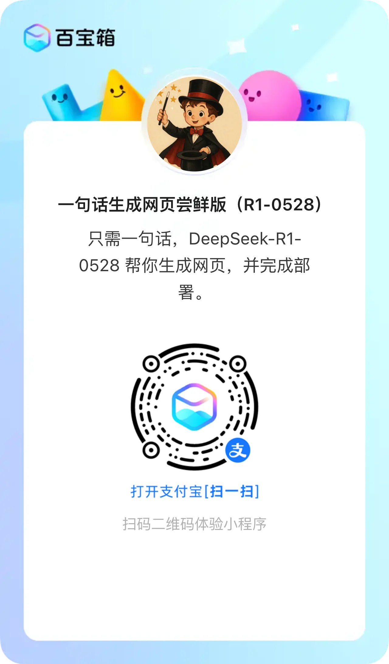 DeepSeek‑R1 0528 的升级,既是技术力的跃迁,也是开发者生态的利好:凭借 蚂蚁百宝箱 免费、无限量的调用通道,任何人都能把顶尖推理能力快速嵌入到自己的产品与创意中。