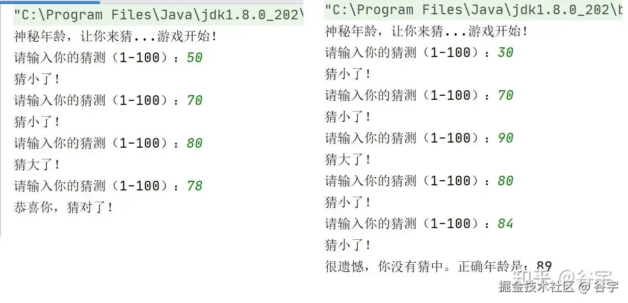 (6) 游戏结束处理,对玩具猜中或未猜中的情况进行结果打印:System.out.println()。