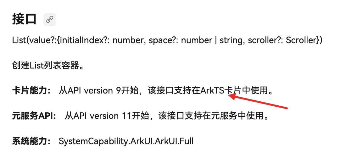 主要是卡片UI视图,可以在这里对卡片进行绘制,支持声明式范式的部分组件、事件、动效、数据管理、状态管理能力,在使用的时候,可以查看官方Api中是否标记了“卡片能力”的标记,如果标记了,证明是可以在ArkTS卡片中使用。