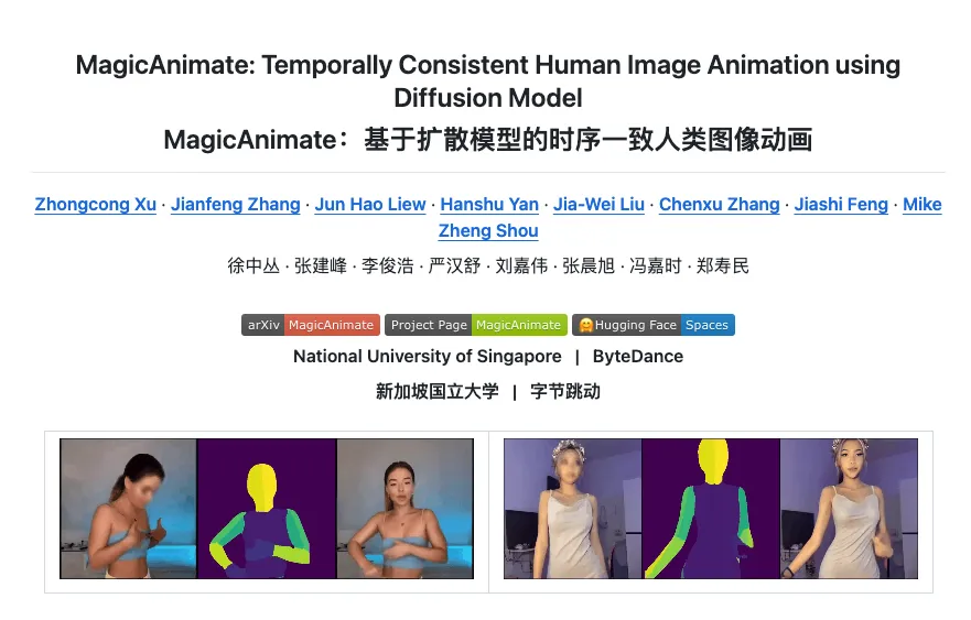 由 MagIC Research 团队(新加坡国立大学 & 抖音 ByteDance)于 2023 年在 CVPR 2024 发布,GitHub 公开后迅速爆红,目前已有 11.1k ⭐️、1.1k forks。它突破传统帧扭曲方法,通过扩散模型+时序编码,实现高保真一致动画,是当前最强人体图像动画技术之一!