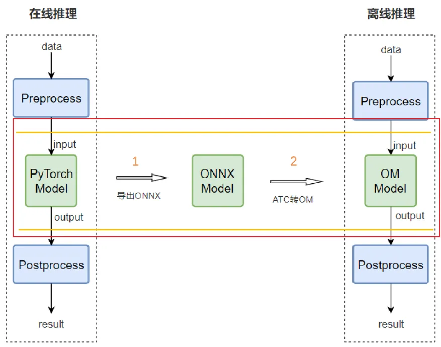 本文档适用的场景是传统模型迁移到昇腾设备上(见下图),出现了精度问题,介绍精度问题的定位方法和解决方案。本文档只介绍“Pytorch module -> onnx -> om”场景。