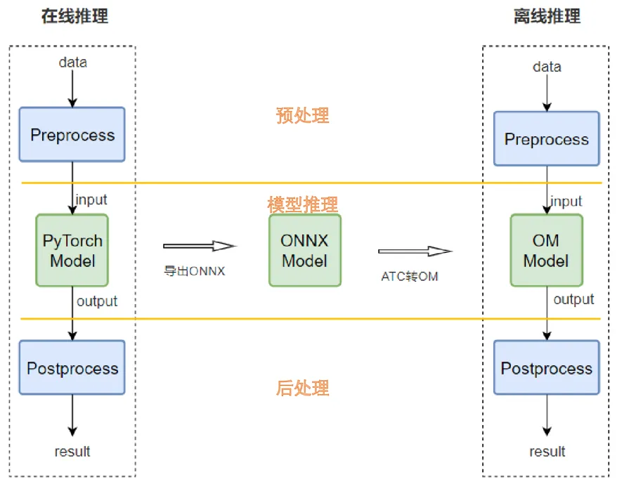 确认了是在模型存在精度问题后,先来分析模型推理的过程:Pytorch module -> onnx -> OM