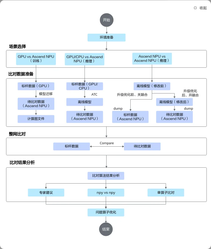 - 如果问题算子的单算子精度正常,则说明算子输入有问题,或可能是累积误差导致的精度下降,需要前向二分定位关键算子。