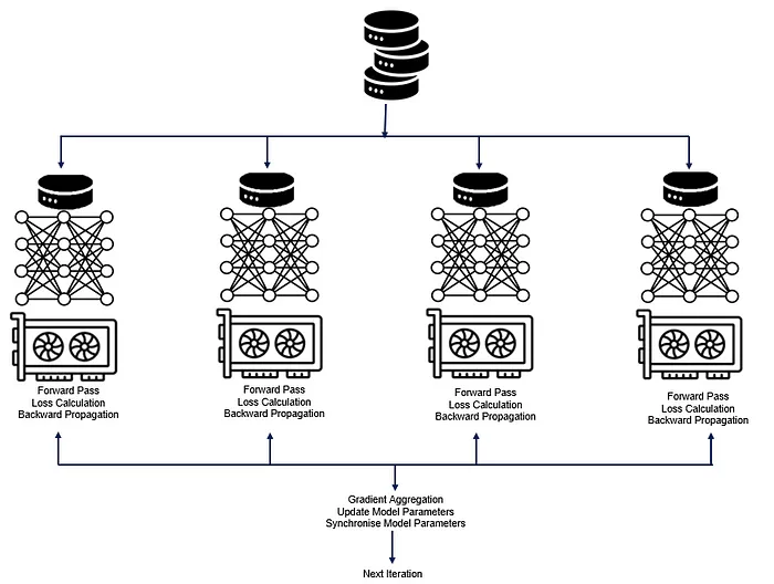 数据并行是指将一个批次(batch)的训练数据分成若干个小批次,分发给多个计算节点来进行训练的并行方式。