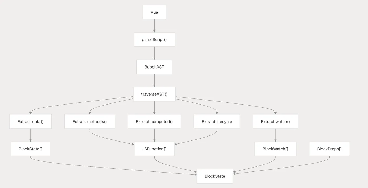 脚本解析提取 Vue 组件逻辑并将其转换为 BlockState 表示: