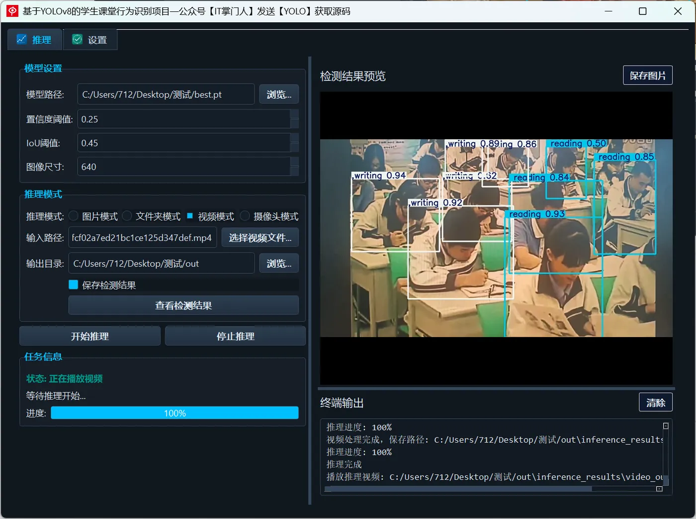 该系统不仅具备较高的检测精度和实时性,还支持多种输入形式(图片、视频、摄像头),并配备友好的图形界面,方便非专业用户快速部署和使用。配套的源码和训练教程让开发者可以轻松复现和二次开发,满足不同教学场景的定制需求。