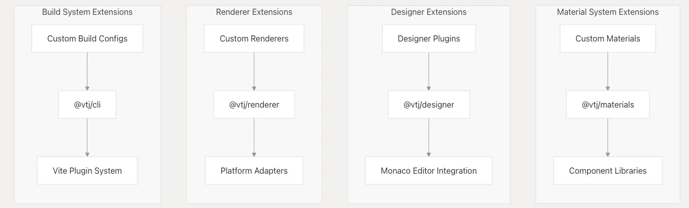 VTJ 为开发人员提供了多个扩展点,用于自定义和扩展平台的功能。
