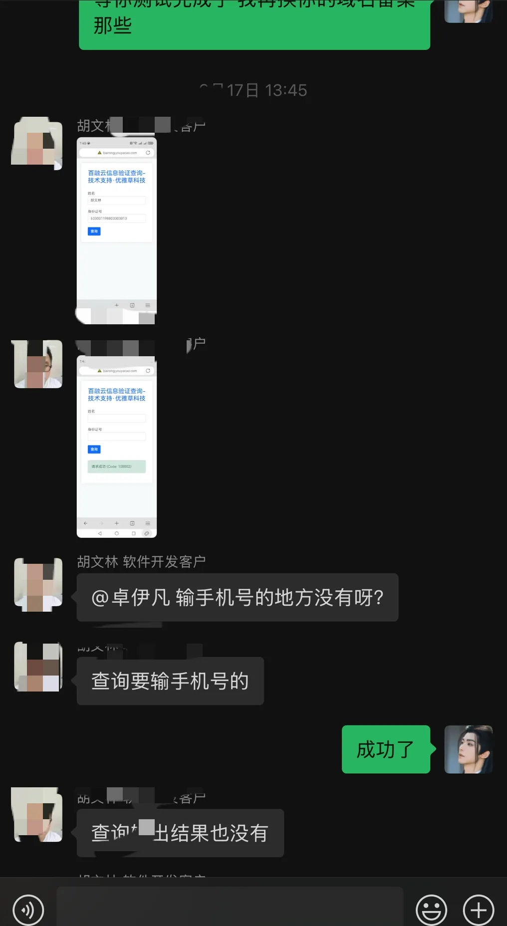 但是没有输出结果,其次查询要素里面要增加手机号,于是我们改进代码