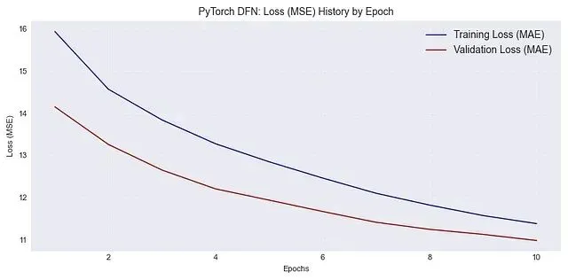 深度前馈网络(DFN):对数销售的MSE:训练1.079 → 验证0.165,测试数据集泛化0.079实值销售的MAE:训练5.644 → 验证5.016,泛化6.197
