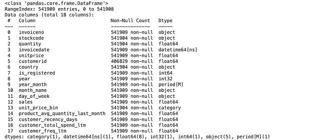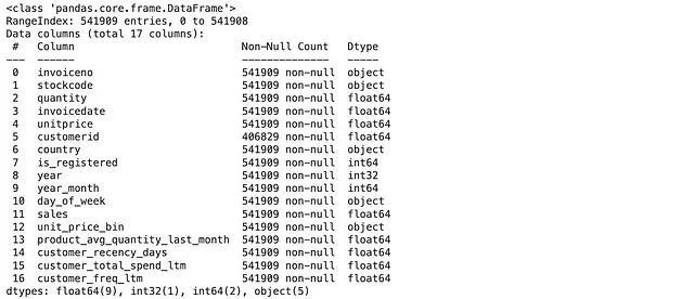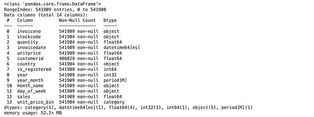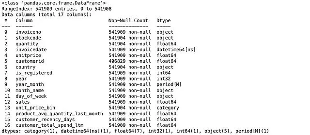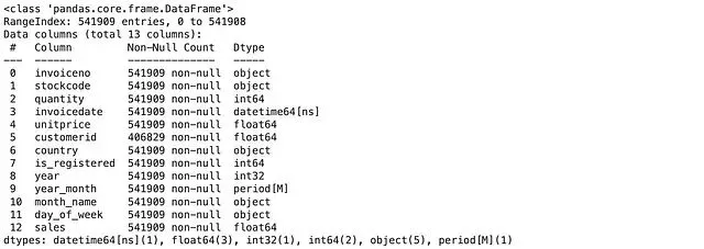 obj_cols = ['invoiceno', 'stockcode', 'country', 'invoicedate']