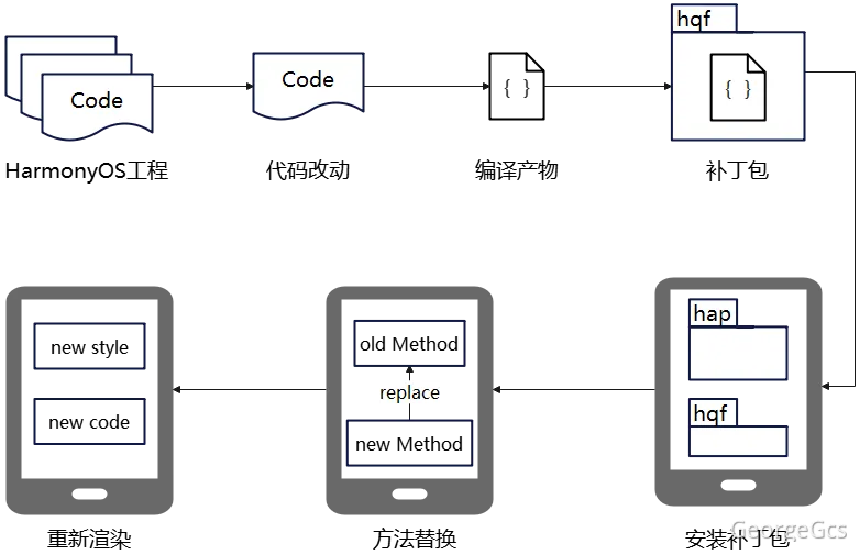 而补丁修复则是替换并更新运行时中对应方法或文件并重载到应用中,最后重新构建界面渲染树,根据生效场景不同,又可分为热修复和冷修复,热修复就是在补丁包完成修复后无需重启应用(ability)即可使修改生效,并可保持应用当前的运行状态,如变量、页面位置等,而冷修复则是需要重启应用(ability)才可使修改生效。
