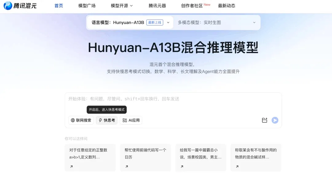 Hunyuan-A13B模型,是腾讯内部应用和调用量最大的大语言模型之一,有超过 400+ 业务用于精调或者直接调用,日均请求超1.3亿。本次进行升级更新并对外开源 ,是继混元large后混元大语言模型推出的又一重要开源模型,参数更小,但是性能和效果实现了大幅的提升。接下来,腾讯混元也将推出更多尺寸、更多特色的模型,将更多实践技术与社区共享,促进大模型开源生态的繁荣。