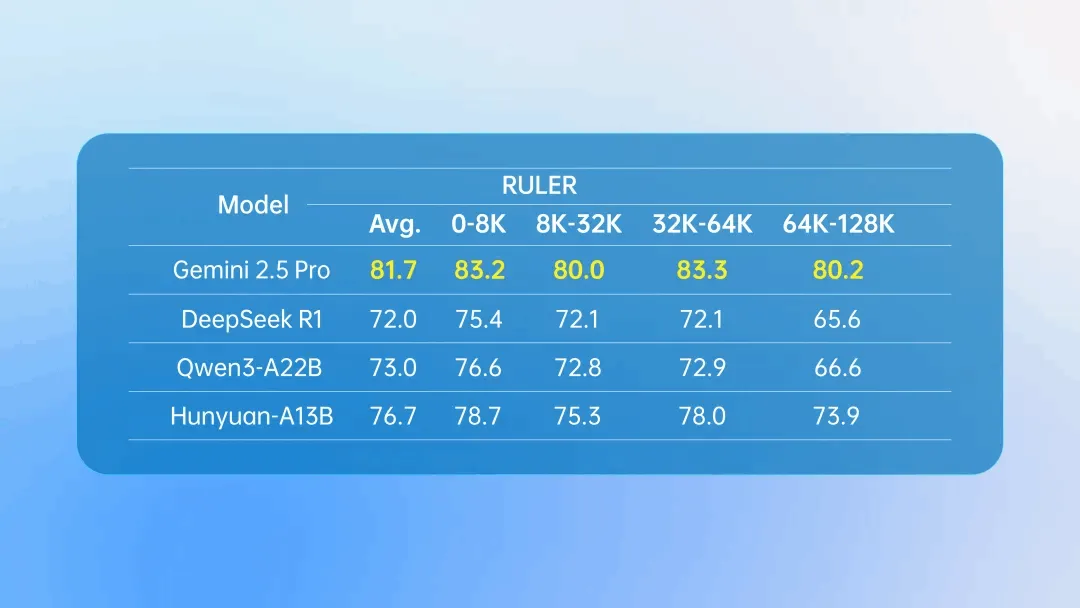 在长文方面,Hunyuan-A13B支持256K原生上下文窗口,在多个长文数据集中取得了优异的成绩。