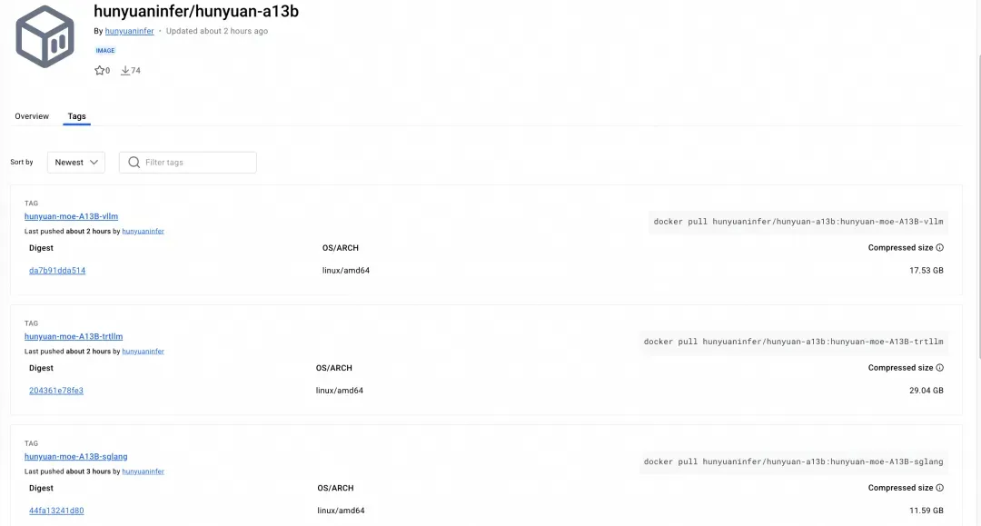 https://hub.docker.com/r/hunyuaninfer/hunyuan-a13b/tags