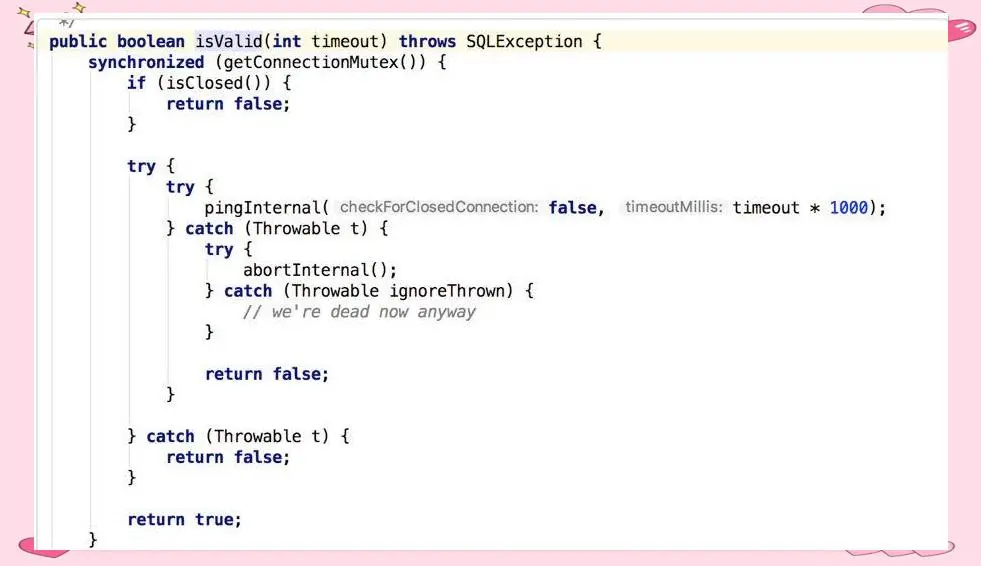 在MySQL连接器的源码中,使用了ping命令来进行连接验证。这一设计确保了连接的有效性,并在必要时进行重新连接,从而保证了数据库操作的稳定性。