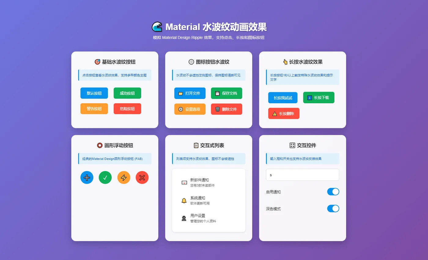 前两天做页面交互时,突然有个想法:“我想加一个点击时有水波纹的按钮,就像 Android 上那种 Material Ripple 效果,既优雅又带感。”